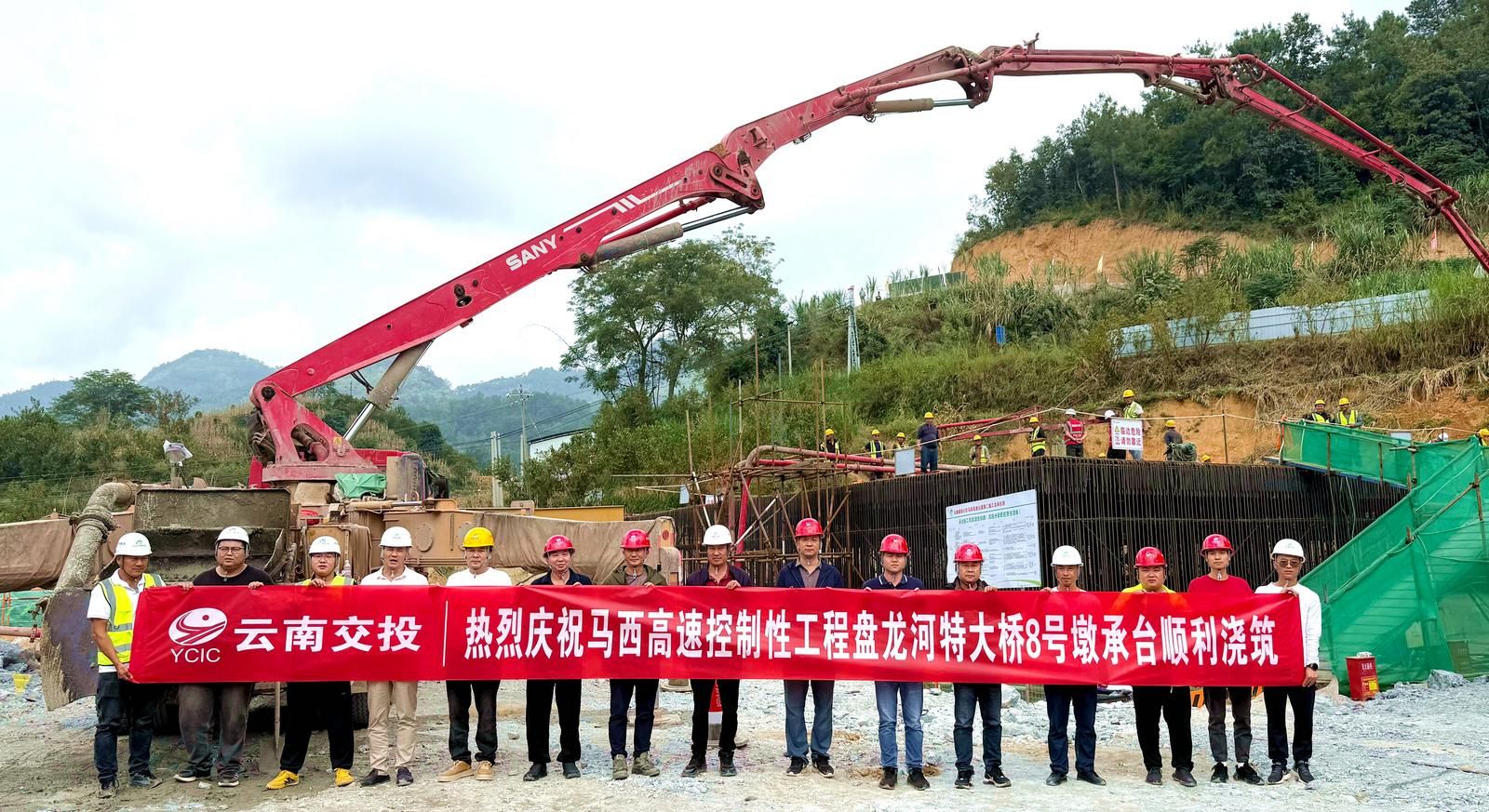 近日,由云南交投集团投资建设的马西高速盘龙河特大桥首座承台圆满完成浇筑。这是盘龙河特大桥继桩基工程全面铺开后的又一重大突破,标志着该桥从桩基施工转为承台施工阶段。