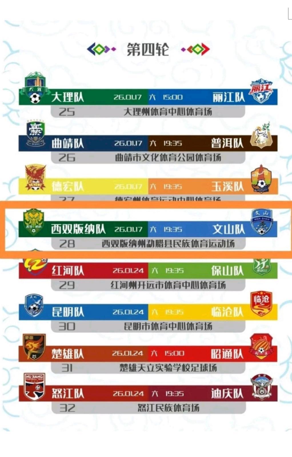 文山队将客场对战西双版纳队