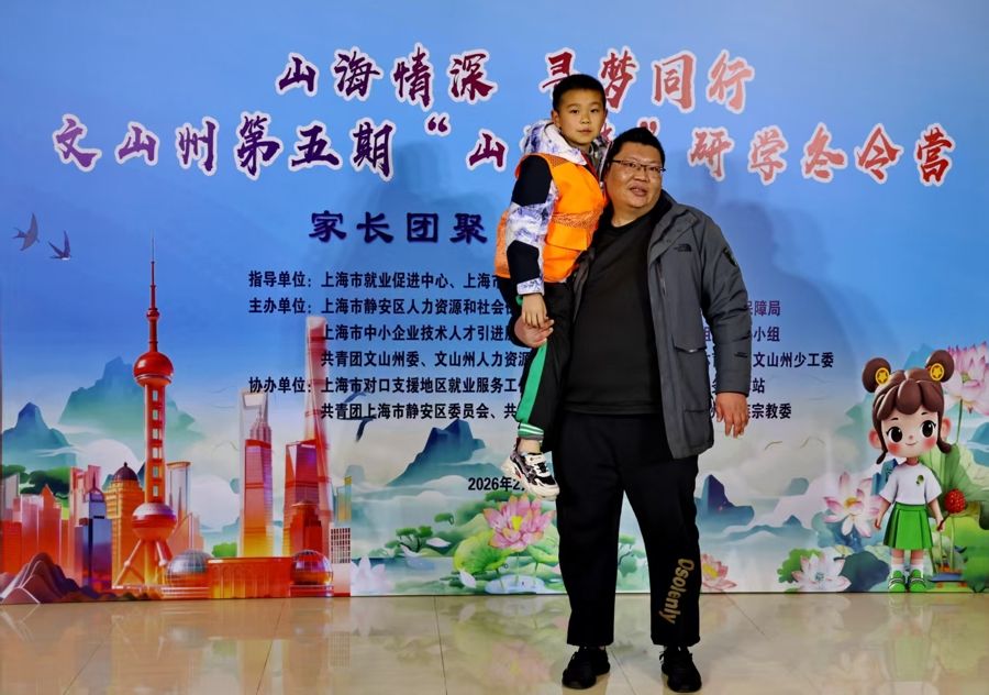 2月3日,云南省文山州“山海情”留守儿童来沪研学冬令营家庭团聚日活动在沪举行。自2024年首次举办至今,“山海情”研学活动已经举办五届。在上海市就业促进中心、上海市援滇干部联络组的大力支持下,此次活动的规模为历届最大,共计有67名7-18岁的文山州在沪务工人员子女参与。