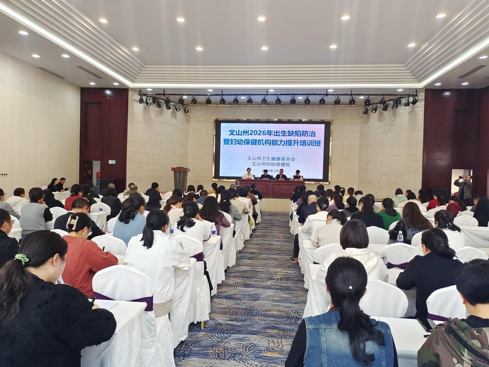 文网讯 为做好出生缺陷防治工作,提升文山州妇幼保健机构能力,持续优化服务质量,3月24日,由州卫生健康委主办、州妇幼保健院协办的文山州2026年出生缺陷防治暨妇幼保健机构能力提升培训班顺利开班。州妇幼保健院及八县(市)妇幼保健院相关负责人参加培训。