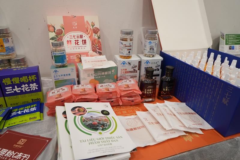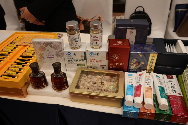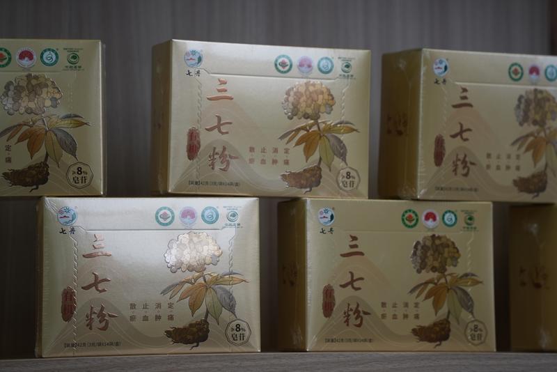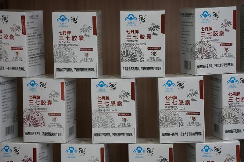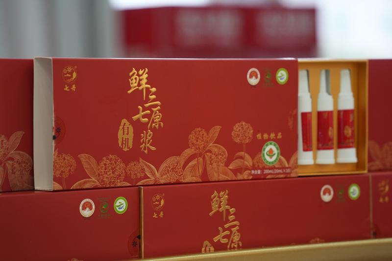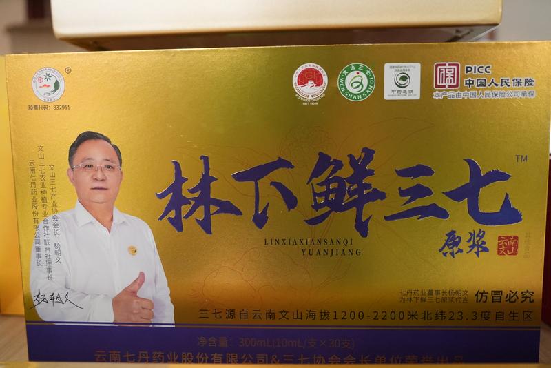 “这款产品叫有机三七粉,是用朱有勇院士团队技术种出的林下三七,是经过200多项指标检测认证的有机产品。这个三七胶囊,是把三七粉装到胶囊壳里面,方便服用。这款产品叫鲜三七原浆,是我们去年新出的产品。我们通过国内一流技术来提取三七的有效成分,做成口服液,这款产品比较畅销,去年下半年销售额有上千万元了。”杨朝文介绍道。