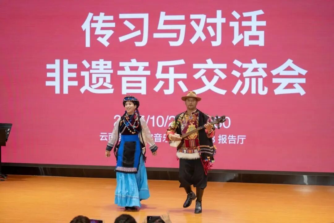 作为系列活动的深化,“传习与对话——非遗音乐交流会”提供了集中、开放的对话场域。活动特邀多位云南省代表性传承人进行现场展演,并围绕传统音乐的活态传承与高校师生展开对话。中央音乐学院师生在此不仅是聆听者,更是积极的对话者,他们通过观摩与交流,将民间艺术家的实践经验转化为可被学院体系理解和利用的宝贵资源。