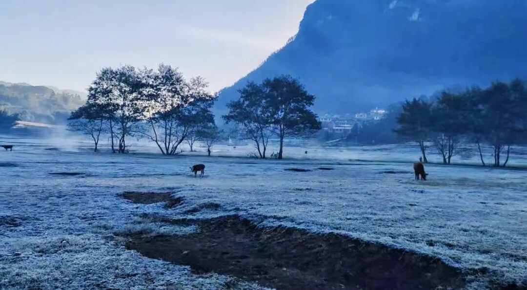 麻栗坡的冬日很少下雪,取而代之的是霜的出现。当气温降低,晨霜便在阳光照射下闪闪发光,升腾出雾气,为执木坝子增添了一份冬日特有的韵味。