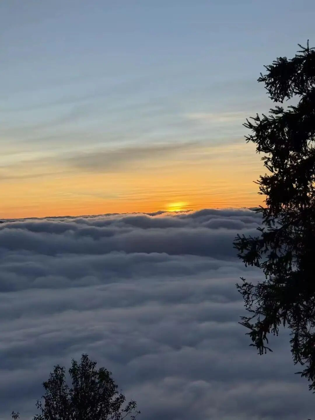 而比霜更为壮阔的,是茨竹坝的云海。每逢冬季的晴天,这里蓝天白云,雾气缭绕,茫茫云海非常壮观。