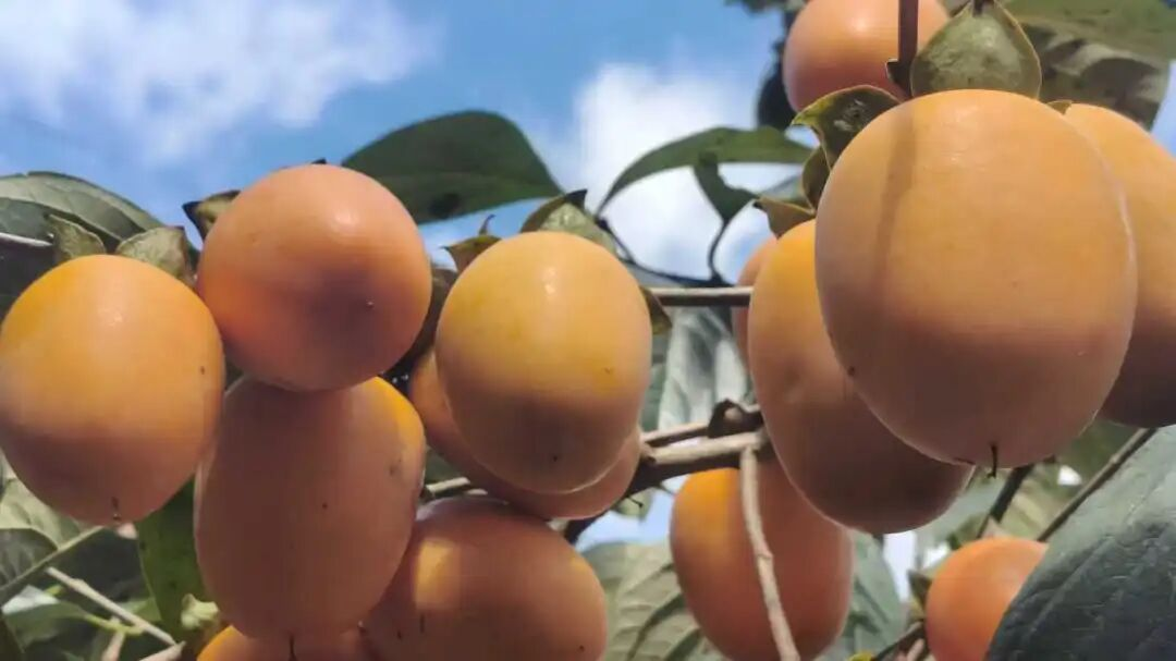 冬日来临,麻栗坡的柿子树依然热闹。橙黄色的柿子像一个个小灯笼挂满枝头,“红柿挂枝头”的景象为寒冬增添了几分暖意。这些果树叶片落尽,只留下满枝橙红的果实,与蓝天白云形成鲜明对比。