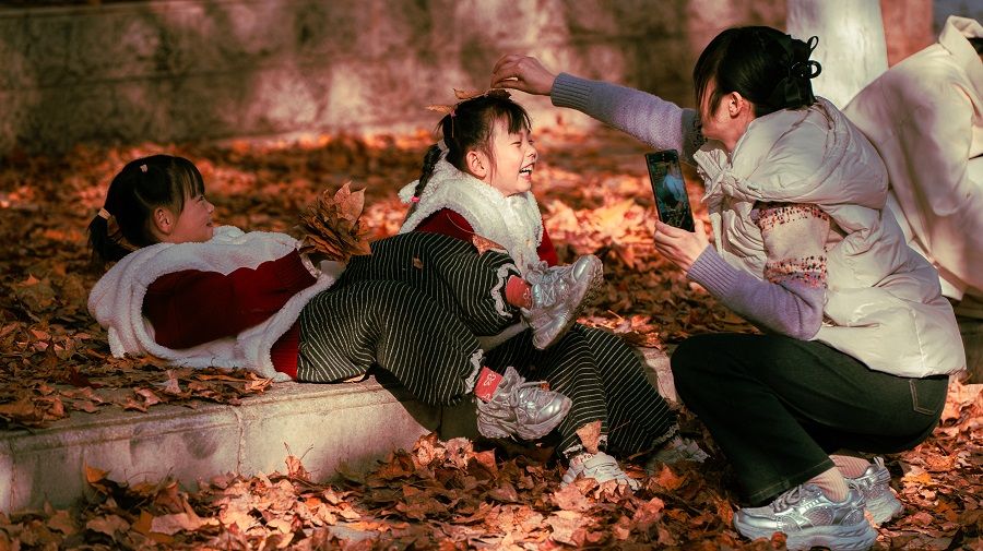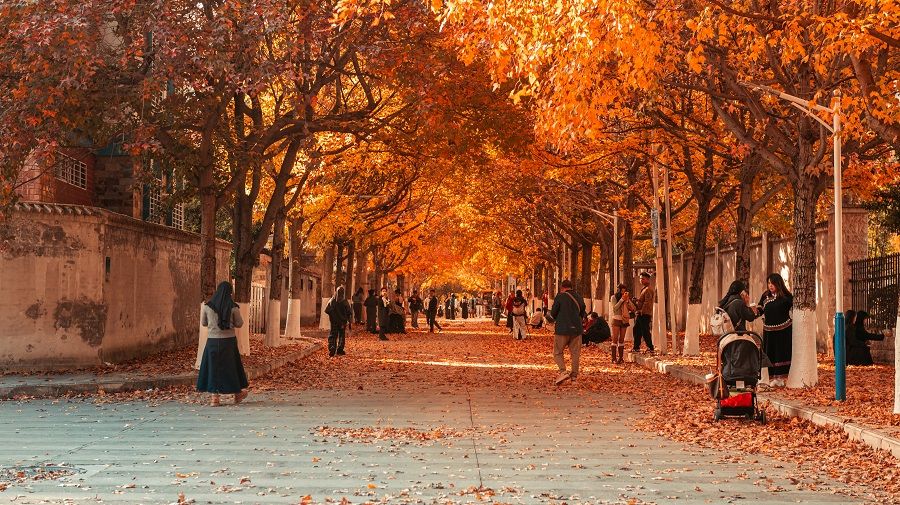 火红与金黄交织的叶片在暖阳下摇曳生姿