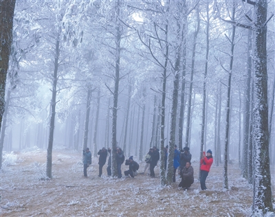 ⑧人们在丘北县舍得乡拍摄雾凇。【谢昭瑾 摄】