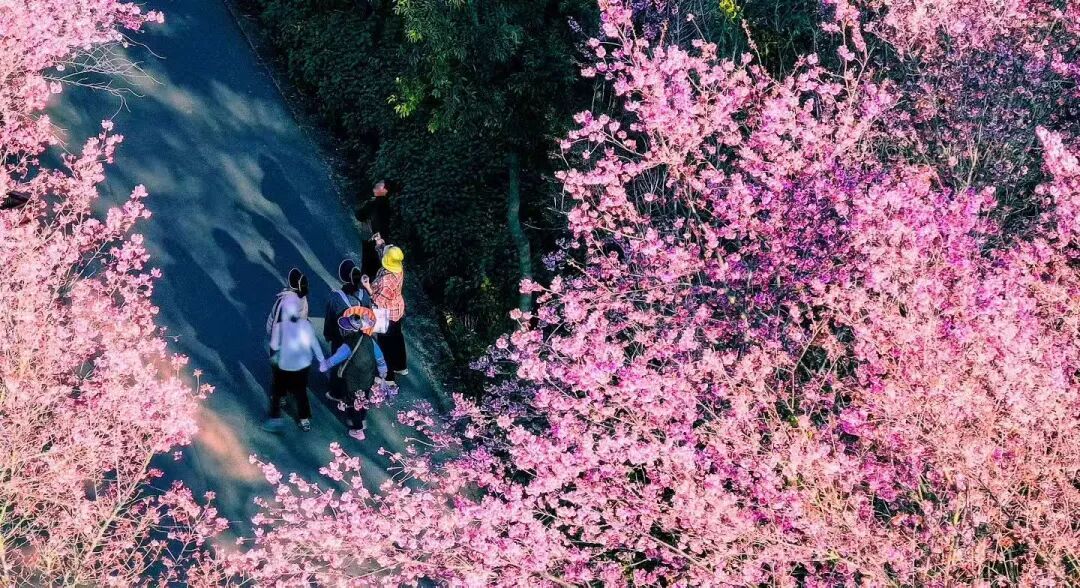 冬日里的亮丽风景!普者黑乐水洞樱花吸引游客纷至沓来