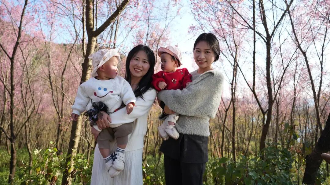 游客王女士分享道:“今年是第一次来这边看樱花,感觉特别好,风景也很好,还有很多小吃,大家可以来早一点,也可以晚上来,刚好就可以拍到日落的时候,我觉得那会很好,拍照的话会很出片。今天刚好趁着太阳很好,就带我朋友还有两个宝宝,一起来看一下风景。”