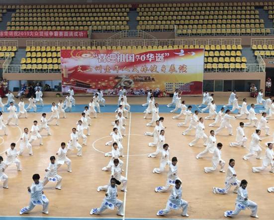 文网讯 9月10-11日,在州民族体育馆举行的文山州老年人文体健身展演活动中,州老年大学武术系太极初级、中级、提高班、高级班和表演班百名学员组成的"百人太极"表演班,参加了展演,成为来自全州20多支参加表演团队中特别亮丽的一支队伍。
