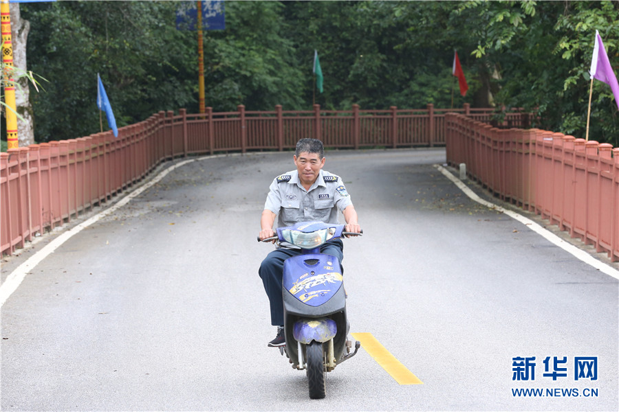 张武荣在景区谋了一份保安的工作,负责治安巡逻、引导游客停车,上班一天、休息一天。对于半辈子耕田种地的张武荣来说,这份工作显得很轻松。