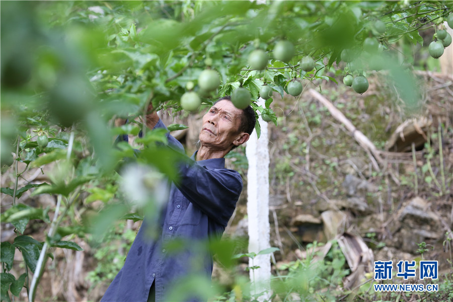 侯兴安在自家百香果园里劳作。(新华网 赵普凡 摄)