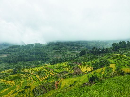 山河村庄,田野农家,当阳光缓慢地褪去炙热,前后插下的秧苗,青黄相间的梯田,其景色别具一格地朴素与惊艳,再加上秋天的薄雾,让人深感大自然的鬼斧神工,让原本最普通的梯田人家,焕发着仙境般的缥缈,独具魅力的如画乡村,呈现在眼前,让人多了几分乡愁的怀念,这,就是我的家乡新马街。