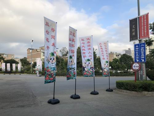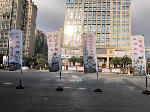 据了解,文山国家三七节期间将有来自世界各地的宾客前来了解、研究三七,设置这些宣传旗主要是为了迎接宾客,增加节日氛围。