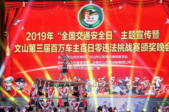 2019年“全国交通安全日”主题宣传暨文山第三届百万车主百日零违法挑战赛颁奖晚会由州文明办、州公安局交通警察支队主办,文山市委宣传部、文山交通运输集团公司协办,FM100.6文山交通广播承办。