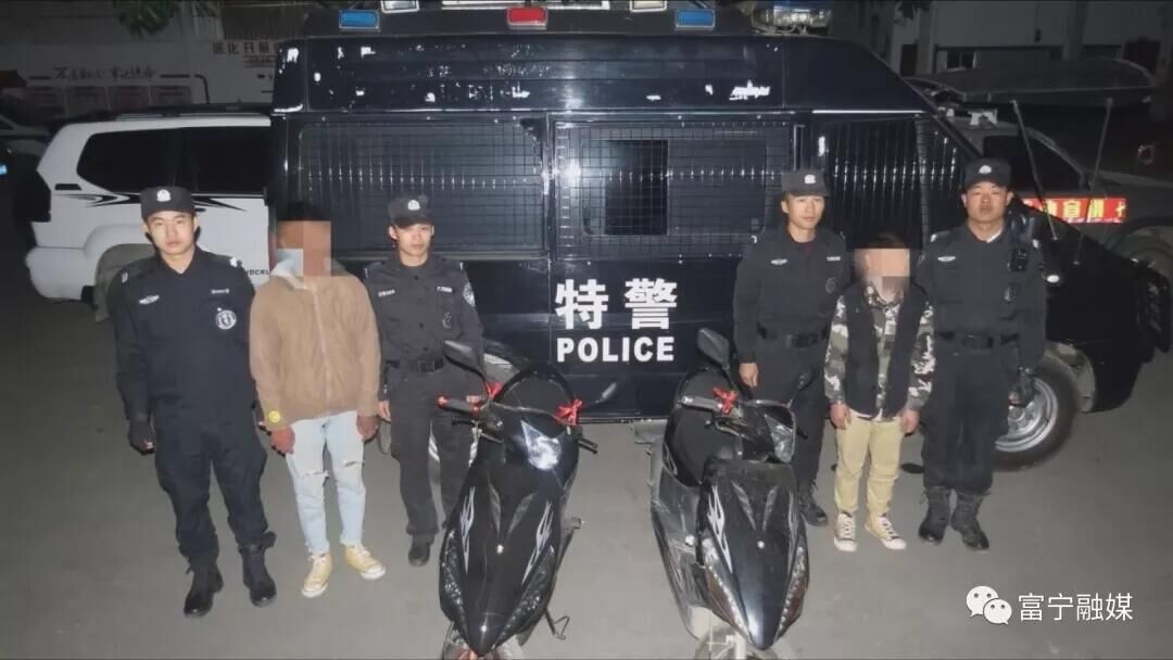 文网讯 近日,富宁公安局巡特警察大队夜巡小组在城区开展治安巡逻整治时,抓获两名盗窃摩托车的犯罪嫌疑人。