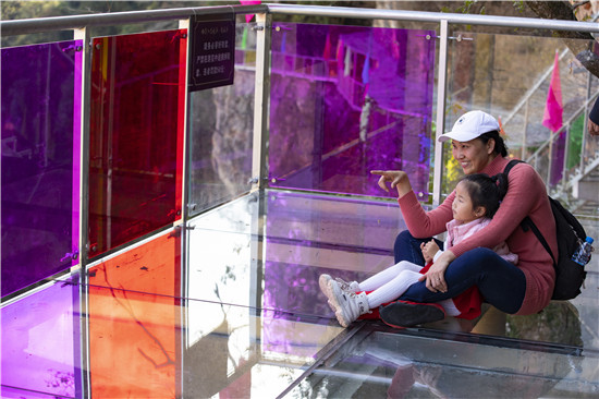 今年1月18日,随着修建在悬崖峭壁上的玻璃栈道建成开放,更为景区锦上添花,增加了玩点,成为节假日人们举家游玩的好去处。