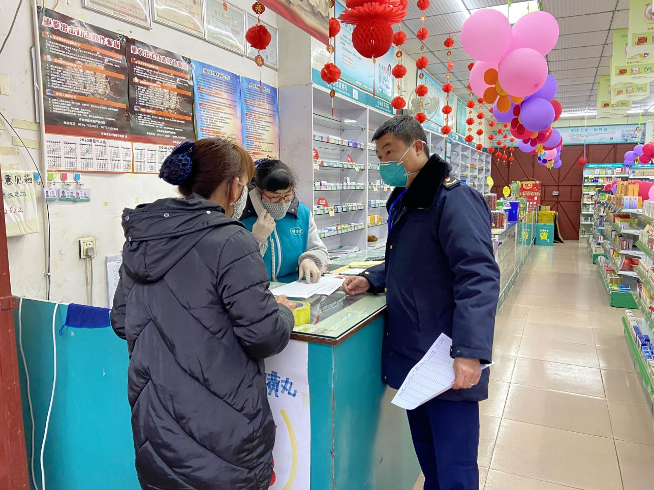 执法人员检查药店现场