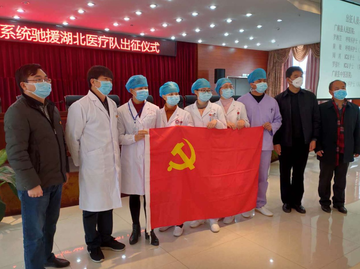 今天13:00,广南县5名护理人员出征湖北咸宁。