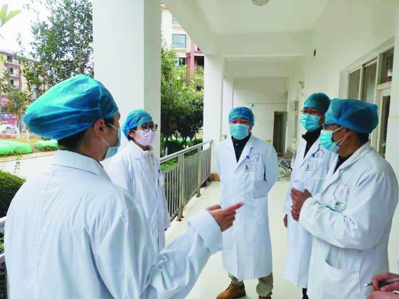 2月2日,在援滇专家的指导下,丘北县人民医院开展了新冠肺炎应急处置演练活动,以便积极应对新冠肺炎疫情蔓延。援滇医疗队队长葛梓亲临现场,亲自对参加应急演练的100余名医护人员进行指导,并组织召开应急演练总结会,葛梓、张立旻和李秀文等援滇专家纷纷建言献策。在完成医院内的准备工作后,援滇医疗队员们深入温浏、清水江和双龙营等乡镇卫生院及部分卫生室,对基层卫生医疗机构的疫情防控工作进行指导,并给他们提出相应防控建议。