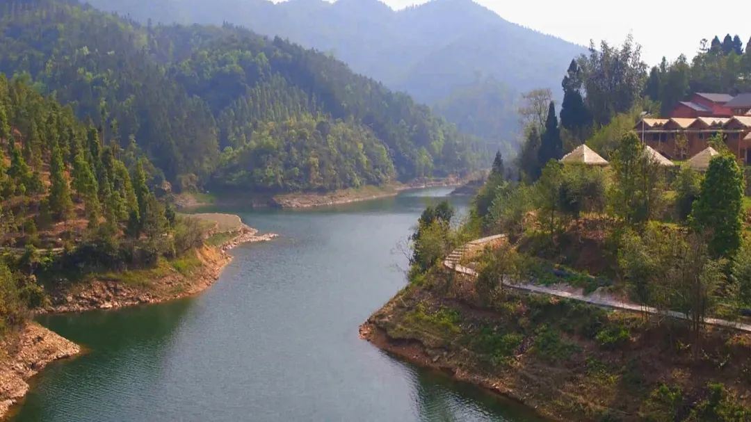 除了山高林深的鸡冠山,蓝天白云下的大地湖水波悠悠,凌空鸟瞰,水域逾百亩,俨然玉环旋舞,玉带凌风。约上小伙伴在环湖步道漫步,在亲水台嬉戏,或者寻一凉阴树下垂钓……自由自在徜徉于自然风光中,细品“香山脚下水波波,两岸桃花夹小河……”的悠然。