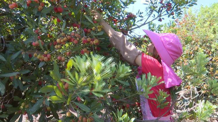 别看现在盘龙山杨梅园里还有些品种的果子没熟,但园里已经十分热闹了。记者看到,有十多个当地的老百姓被雇佣来园里采摘杨梅,大家纷纷提着竹篮在园里有说有笑的一起工作,不一会儿,一篮篮杨梅就被送了出去。