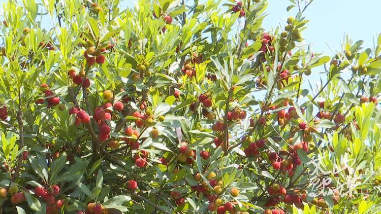走进文山市马塘镇侬人河的盘龙山杨梅基地,红彤彤的杨梅挂满树枝,让人垂涎欲滴。杨梅树树高、枝繁、叶密,春夏交替间杨梅宝宝吮吸了整个春天的甘露,长成了一颗颗晶莹剔透的红珍珠。有的被枝叶遮挡了,有的则露出它们的小脑袋仿佛在示意人们去采摘。