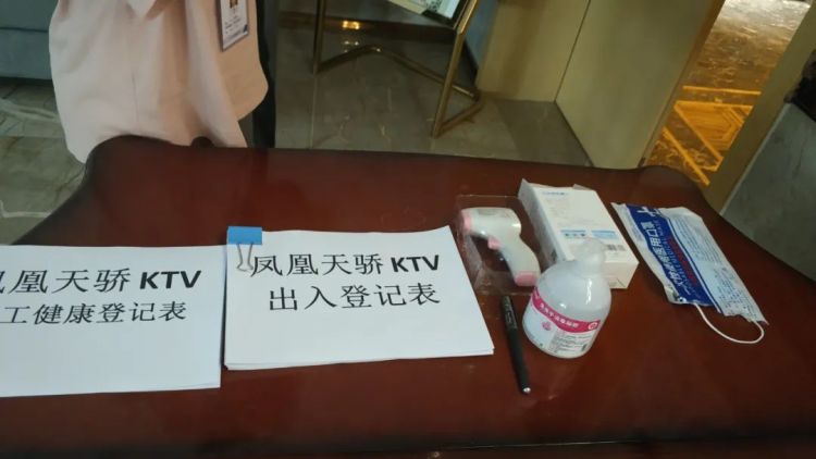 5月14日,文山市文化市场综合行政执法大队对文山城区提交了疫情防控方案的KTV、网吧进行逐一检查。在凤凰天骄KTV门口记者看到,预约表、员工健康登记表、出入登记表、消毒液等一应俱全。KTV负责人告诉记者,这里总共15个包间,按照营业率不超过50%的要求只开放了6个包间,其余的都已经使用封条对包间进行了封锁,他们还按照要求设置了消毒室和隔离间。