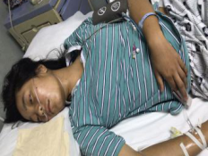 高考的前一天,在宿舍突然病倒,脸色惨白,不能言语,尽管送医及时,但仍有生命危险。历经县、州、省三级医院诊断为左丘脑出血。确诊后急转重症监护室,时至今日病情不见好转,专家会诊建议保守治疗,留院观察!