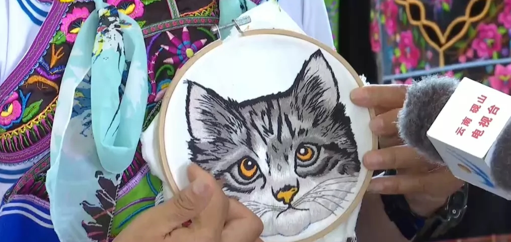 走进白沙坡彝族村,崭新的民居坐落在青山绿水之间,在活动室展厅里,各式各样的绣品,让人目不暇接,花鸟虫鱼,山水风光,栩栩如生。