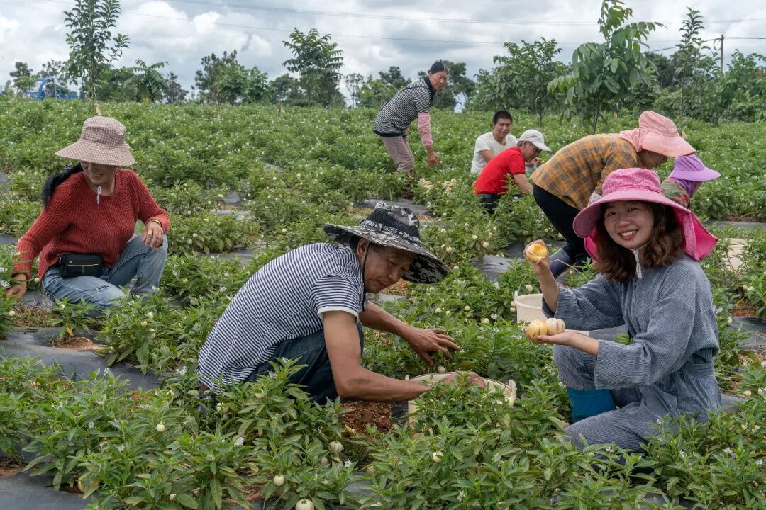 ▲拼多多平台销售带动下,石林县山土间合作社去年把100亩药材种植基地改造成人参果基地,8月22日,基地新一季的人参果开始上市。穆功/摄