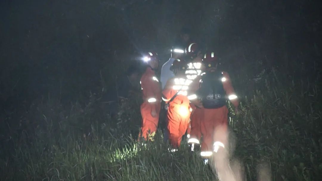 10日0点50分,救援人员发现山顶处有微光,救援人员朝着微光爬到山顶,发现被困人员。由于在山上被困时间较长,且在夜里气温骤降,3名被困人员已经出现体力透支现象。经过短暂休整,3名被困人员在救援人员的引导护送下,于1时07分,被护送至山下安全位置。