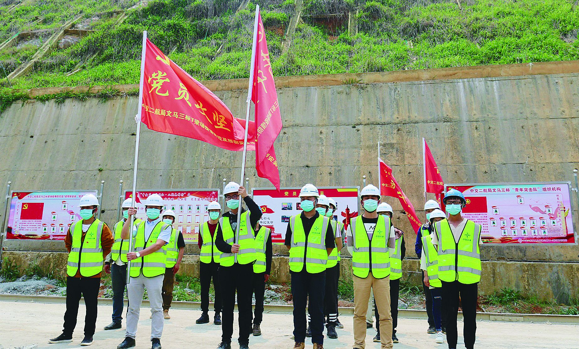 2月初,在党和国家的强有力领导下,疫情很快得到有效控制,2月中旬,文马高速公路也迎来了开工的日子。“开足马力加紧建设,全力以赴追回耽误的工期,确保按期建成通车。”T梁预制安装和路面施工是两项控制性节点,其主要施工班组均为湖北籍人员不能及时返岗。“不等不靠,与时间赛跑才有希望。”在上级公司的大力支持下,协作队伍迅速调动云南本地施工资源,实现3日内T梁预制场和路面拌和站施工顺利投产。为了更好地服务一线施工,项目部成立了“中交二航局文马三标T梁场疫情防控及预制安装党员攻坚队和青年突击队”,把党员领导干部及优秀青年职工派到最艰苦、最急需的施工点,党员职工们纷纷带头,第一时间为节后返岗的工友们送上可口的热菜,配置口罩、消毒水、体温计等紧缺物资,指导并督促各工点生产和生活区域疫情防控措施落地。此外,项目书记、经理带队每日深入现场与班组长沟通、深入工点现场办公,提高事情办理时效,精准高效地解决施工过程中遇到的问题,做到在其岗,尽其责,工作安排具体化、落实措施接地气。