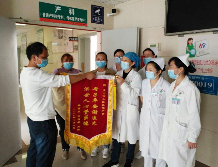 “母子平安谢医术 济世人心赞医德”,10月8日,文山市医院产科收到患者及家属送来的锦旗。看似普通的感谢锦旗,却牵扯出了一段不普通的故事,也牵动了文山市医院两个医务科室所有医护人员的心。
