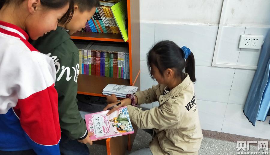 谭梓涵担任班级图书管理员,正在记录同学借阅书籍情况(央广网记者 王启慧 摄)