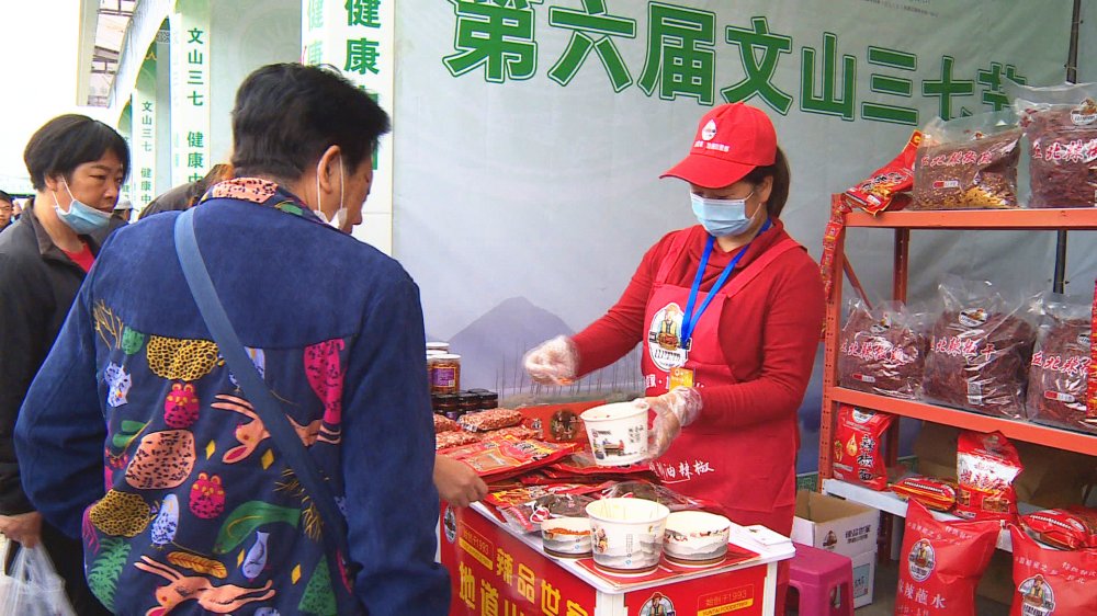 丘北特色产品三七节上受青睐
