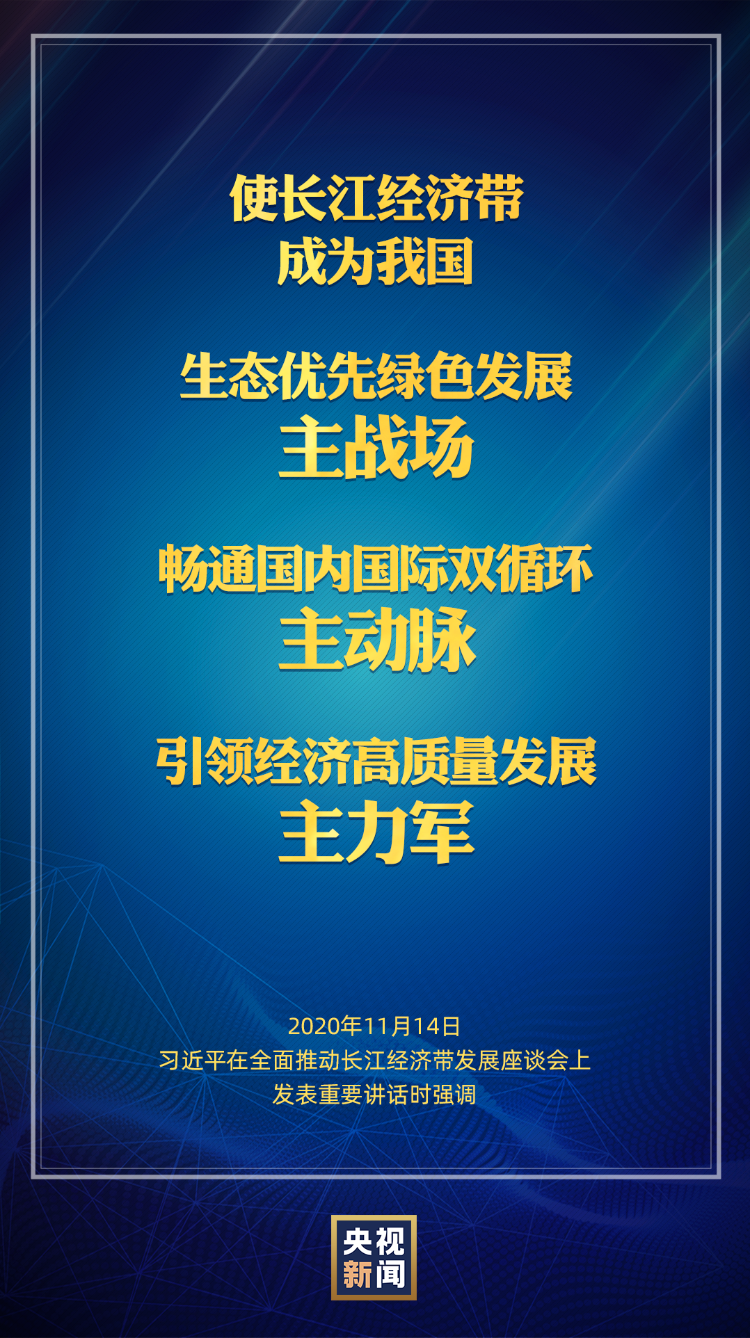 习近平指出,长江经济带覆盖沿江11省市,横跨我国东中西三大板块,人口规模和经济总量占据全国“半壁江山”,生态地位突出,发展潜力巨大,应该在践行新发展理念、构建新发展格局、推动高质量发展中发挥重要作用。