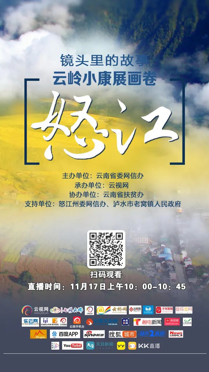 为记录云南全面建成小康社会的可喜成绩和感人故事,云南省委网信办指导、云南省扶贫办支持,云视网推出16场《镜头里的故事·云岭小康展画卷》大型主题系列直播,从2020年10月20日开始,每周二和周五上午10:00至10:30,对我省16个州市进行小康主题直播。2020年11月17日早上10:00-10:30,《镜头里的故事·云岭小康展画卷》大型主题系列直播将走进怒江州泸水市老窝镇老窝村。