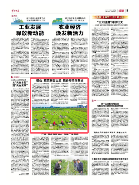 《云南日报》报道砚山蔬菜飘香粤港澳餐桌