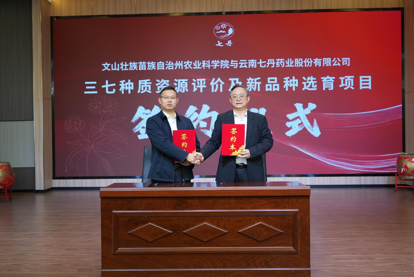 本次活动还见证了重要的产学研合作里程碑。文山州农业科学院与七丹药业正式签署三七种质资源评价及新品种选育项目合作协议。这一合作将充分发挥双方优势,共同推进三七种质资源保护与创新利用研究,为三七产业可持续发展提供科技支撑。