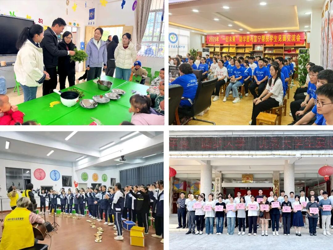 “一起未来”助学行动组11年扎根富宁,不仅资助富宁县一中、县民中等学校的520余名困难学子,发放助学金181.73万元,还出资60万元援建木央镇睦伦田坝小学教学楼,捐赠价值20余万元教学物资,2025年资助的35名学生全部考入本科院校;富宁教育发展协会搭建爱心平台,联合本土企业资助28名家庭经济困难大学生;“圆梦大学”项目在县教育体育局举行捐赠仪式,为27名优秀大学新生发放爱心助学金,云南众木农林发展有限公司还开展定向资助,彰显本土企业责任担当。云南中道公益基金会联合富宁县关工委在富宁县思源实验学校开展“百县万童”公益项目,不仅捐赠爱心物资,还组织音乐会与心理辅导活动,为青少年提供精神滋养;果静公益走进那能乡中心学校,捐赠总价值54.94万元的书包、校服、学习用品等物资,用爱心铺就成长之路。此外,团县委在格当小学捐赠仪式期间,开展《中华人民共和国未成年人保护法》等普法宣讲;政企校联合在归朝镇龙门小学开展“管道保护进校园”活动,普及安全与能源知识;上海互济公益基金会在那能乡中心学校组织染花糯饭制作、红色教育等活动,传承民族文化、厚植红色基因。