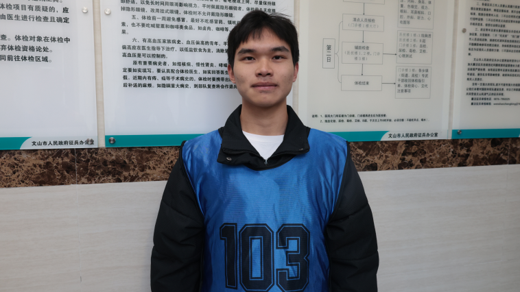 文山学院学生林德祥说:“今天参加体检还是有些紧张,怕自己哪里没做好而错过这个宝贵机会。希望能顺利通过,早日穿上军装,实现保家卫国的梦想。”