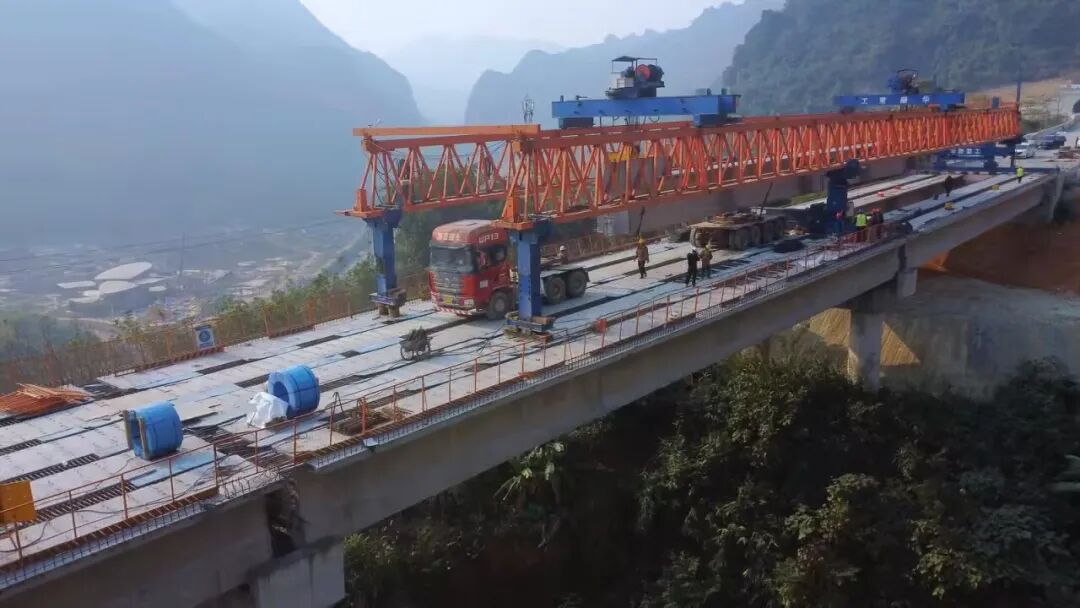 曼棍2号大桥全长968米,桥面设计为双向四车道,设计行车时速80公里。全桥左右幅各6联,上部结构采用4×40米预应力连续T梁,共计架设40米T梁225榀。大桥地处滇南山区,沿线地势陡峭、地质条件复杂,且面临雨季漫长、边坡稳定性差、常年高温湿热等多重自然挑战。此外,桥梁需与地方道路多次交叉,主跨施工需穿越车流密集的国道,交通组织压力巨大。