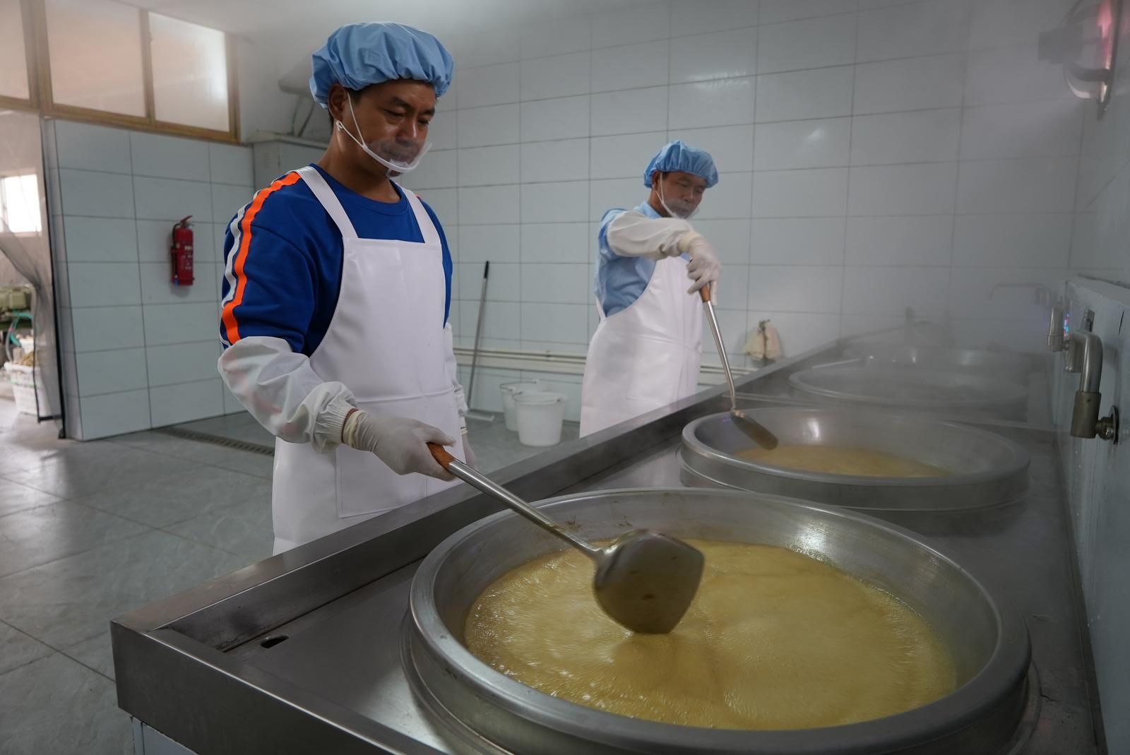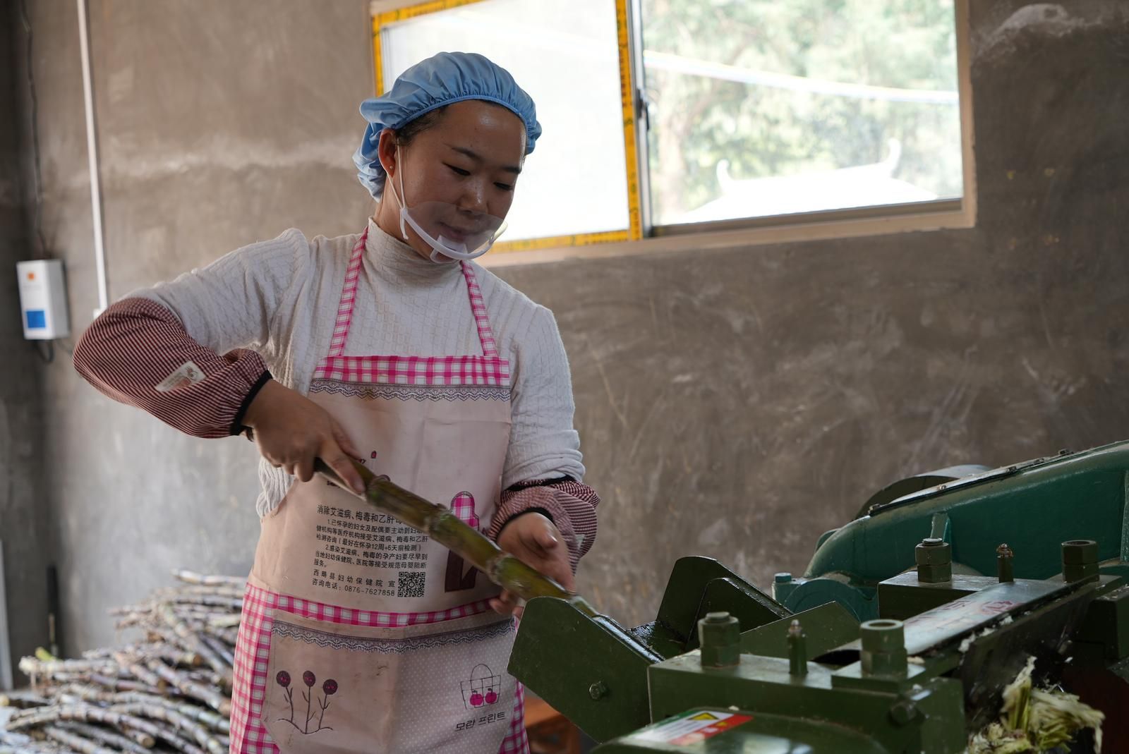 ”咕噜咕噜……”在嘎机村的手工红糖厂房里,几口大锅一字排开,锅里的甘蔗汁从青绿色开始翻滚,渐渐蒸腾出白色的水汽,整个屋子都笼罩在一股浓郁的甘蔗香甜之中。