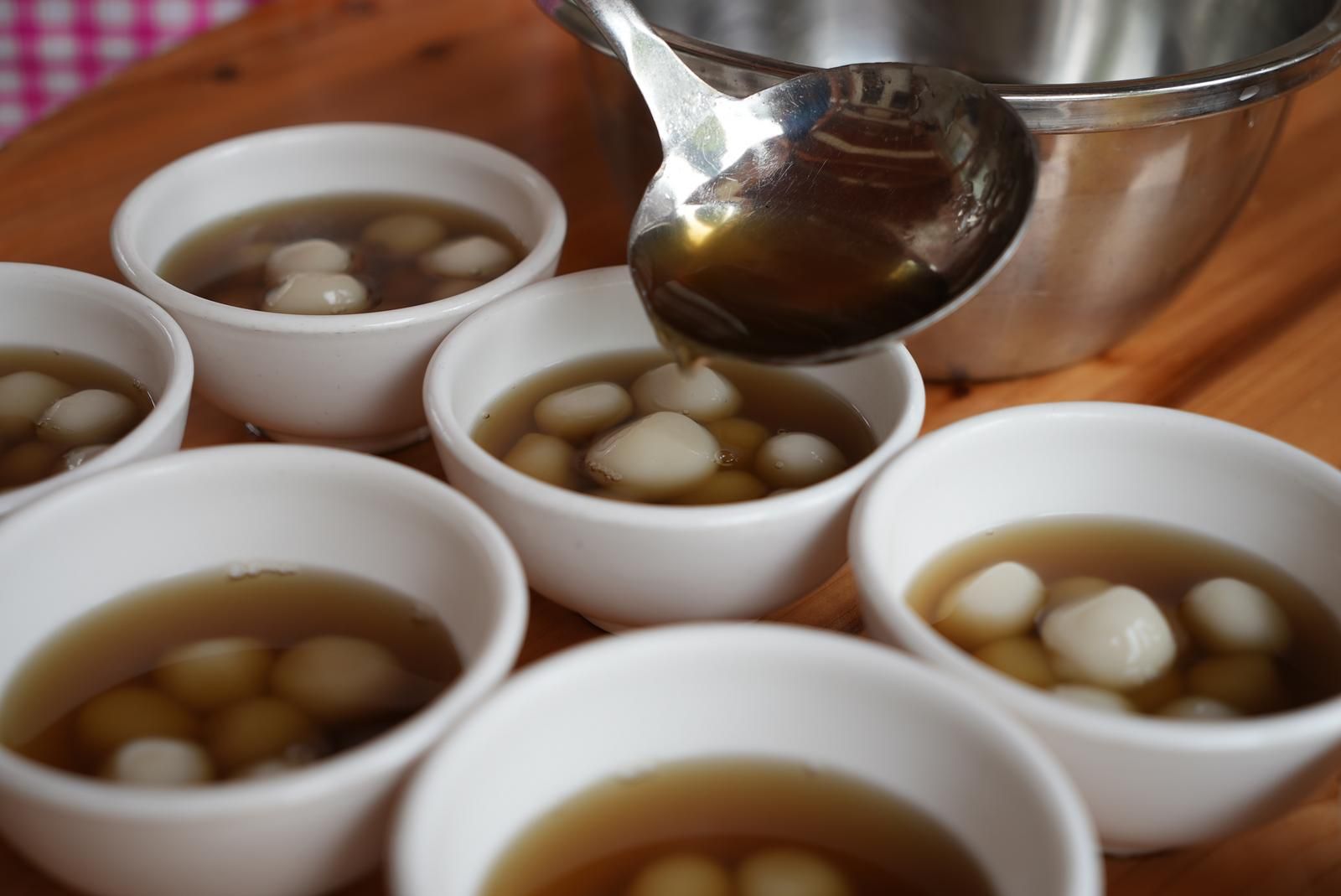 汤圆是糯米粉手搓的,不放馅,煮的时候要用本地手工红糖熬一锅糖水,等汤圆浮起来,舀进碗里,再添一小勺甜酒酿。白胖的汤圆卧在红亮的糖水里,酒酿的米粒星星点点浮在上面。一口咬下去,糯米软糯,糖水清甜,后味带一丝酒香。