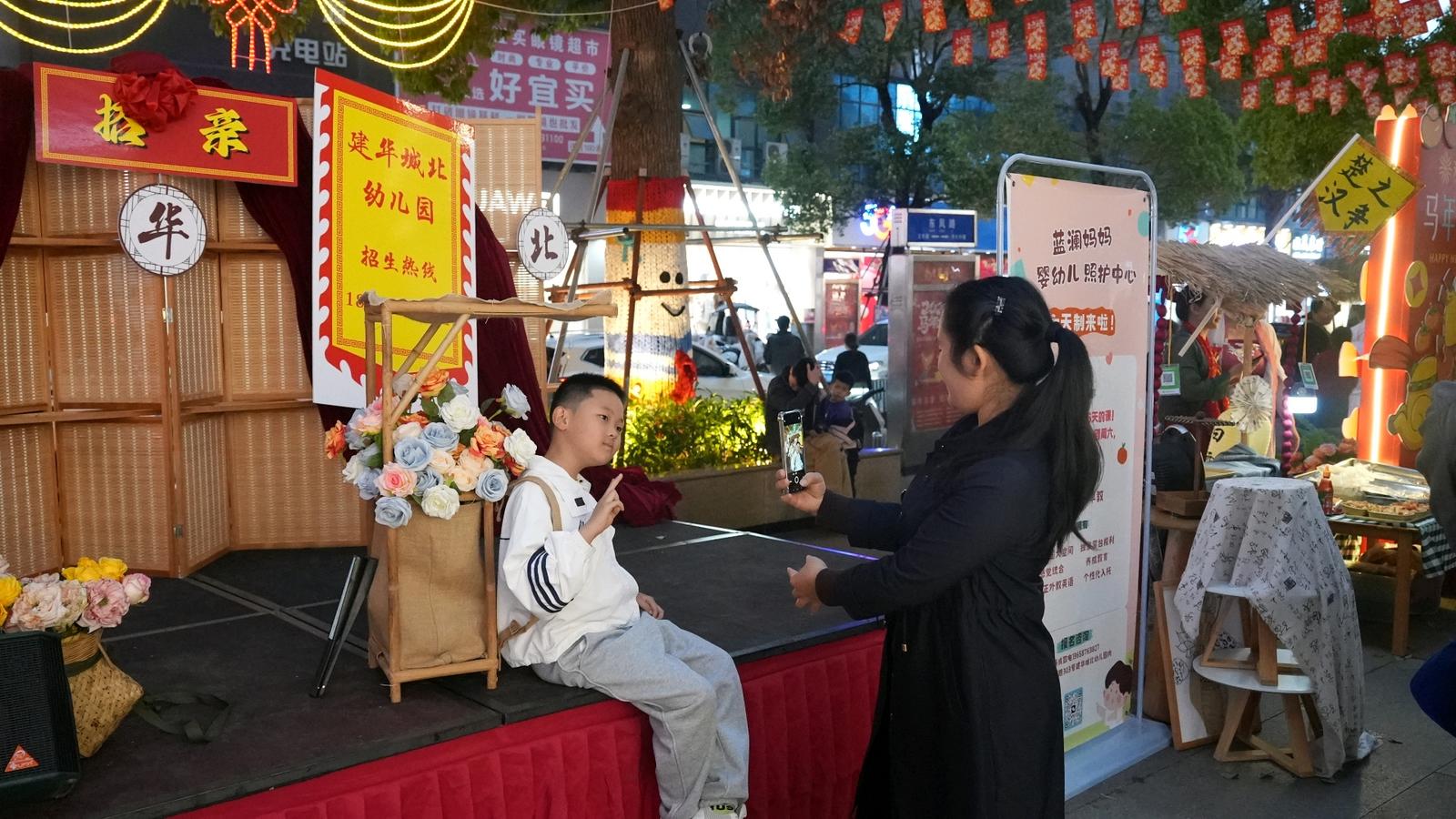 “刚刚背了一首《登鹳雀楼》,获得了贰元的兑换券,我今晚上还参加了套圈,钓盲盒,砸金蛋,第一次参加这种元宵活动,感觉非常开心,很喜欢。”滕琦小朋友说。