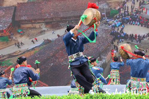 当天,来自各地的文艺队从者兔中学出发,沿途巡演各自的拿手绝活。有的表演非遗项目弄娅歪、手巾舞、纸马舞,有的耍起了壮族的传统武术,有的表演高跷,精彩的表演引得观众和游客争相拍照。伴随着古老的铜鼓声,文艺队将壮族传统技艺、艺术表现得淋漓尽致,展现了壮家的精神风貌。文艺队中,最引人注目的是有很多壮族、彝族等少数民族小孩,他们表演起来也毫不生疏,相信将来他们一定会将优秀的民族传统文化发扬光大。