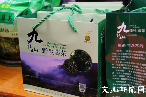 当然了,每年的三月三,四方来客最难以忘怀的还是壮家的传统美食和传统手工艺术品。今年的花街节,设有农特产品和民族民间技艺展示区,九龙红米、九龙藤茶、花糯饭、粽粑、褡裢粑、凉卷粉等美食,引得宾客争相品尝,大呼过瘾。而另一边,壮族传统服饰、刺绣、饰品、银饰等产品,也吸引了很多人前来观赏、选购。此外,现场还有壮族老人编织的竹制品,同样吸引了很多人来选购。