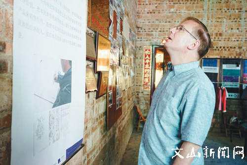 一位呆萌的外国教授生疏地和村民们一起跳芦笙舞,给这个节日增添了许多欢乐,也成了此次跳宫节的亮点,围观的老百姓都看得津津乐道。节日后,Brent Bianchi教授说,这次参观让他有很多宝贵的收获,村民们对他很热情,也很友善。色彩鲜明的民族服饰、村寨里的青山绿水都让他感到很愉快。“现在南宁到昆明的高铁开通了,交通更便利了,希望以后有更多机会了解中国的传统文化和音乐。”Brent Bianchi教授说。