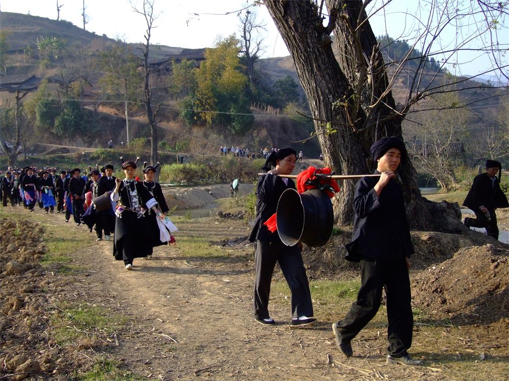 广南县贵马村的壮族村民出村演出铜鼓舞。王明富摄